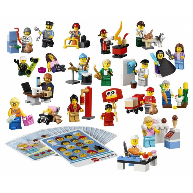 Dieses 45022 LEGO Leute Set enthält 21 Minifiguren, die wichtige Berufe für die Allgemeinheit darstellen, wie z.B. einen Postboten, Krankenhausmitarbeiter, einen Mechaniker und viele mehr. Insgesamt 256 LEGO Elemente wie z.B. die Minifiguren sowie zahlreiche Zubehörelemente (Lebensmittel, Tiere, ein Laptop, ein Skateboard. ein Rucksack, usw.).