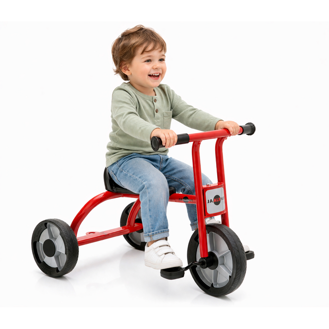 Le mini tricycle de la ligne Jaalinus est durable et de très haute qualité. Le cadre du petit tricycle est fabriqué en tubes d'acier solides. Un revêtement en poudre protège le tricycle contre la corrosion et les rayures légères. Les poignées du guidon sont en caoutchouc pour une prise en main optimale. Le mini tricycle a des essieux robustes et les pédales et les roues sont en polypropylène durable. Les pneus sont en caoutchouc durable et conviennent à de nombreuses surfaces. Grâce à sa finition de haute qualité, ce tricycle convient aux crèches, aux jardins d'enfants, aux écoles maternelles et aux institutions.